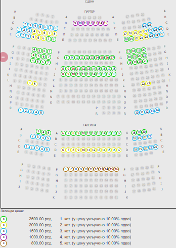 Prikaz mesta u sali po cenama karata i kategorijama